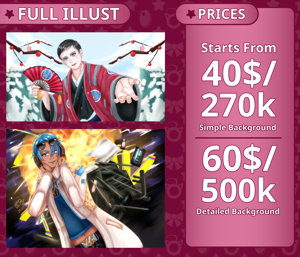 ★ Work Duration: Depending on commission type and details, but usually 1-2 weeks and 3-4 weeks for CG art.
